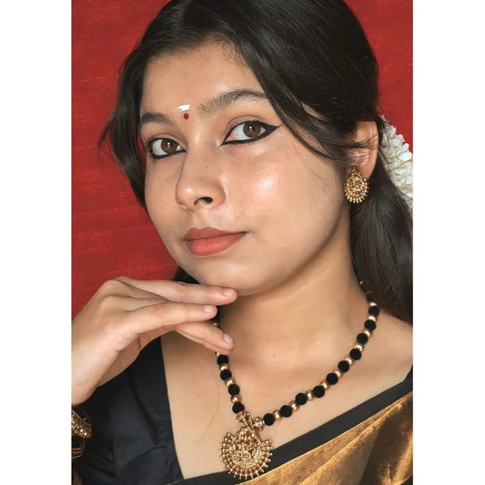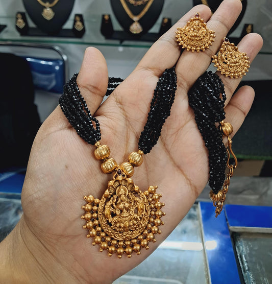 Kaltury™ Black Thread Kemp Stone Lakshmi Necklace Set