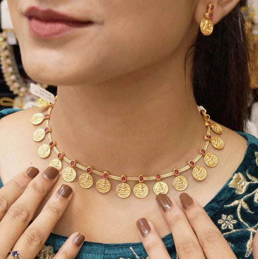 Kaltury™ Gold plated Premium Antique Lakshmi Coin set with earrings